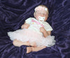 She or he has a closed mouth that has a wet glossy look. You will need to support her/his head as would a real newborn. Her cute little round head flops back & forth just like a real baby. Her/his fine baby hair is drawn in with a faint mist of brown paint. If you choose the heavy option from the drop-down in this listing, the soft cloth body is weighted & stuffed with fluffy fill to round her/him out. Her arms & legs are weighted as well; she/he can even sit up nicely.