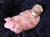She or he has a closed mouth that has a wet glossy look. You will need to support her/his head as would a real newborn. Her cute little round head flops back & forth just like a real baby. Her/his fine baby hair is drawn in with a faint mist of brown paint. If you choose the heavy option from the drop-down in this listing, the soft cloth body is weighted & stuffed with fluffy fill to round her/him out. Her arms & legs are weighted as well; she/he can even sit up nicely.