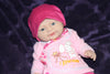 She/he wears real baby clothes in preemie size, and you can even purchase her/his whole wardrobe at your local department store. The outfit will vary. The female will be dressed in girl clothes, and the male will be dressed in boy clothes. She/he will come with an extra outfit. The preemie size fits perfectly. Of course, she/he is wearing a real diaper. I have also included little extras in the box: a blanket, a pacifier, and a bottle.